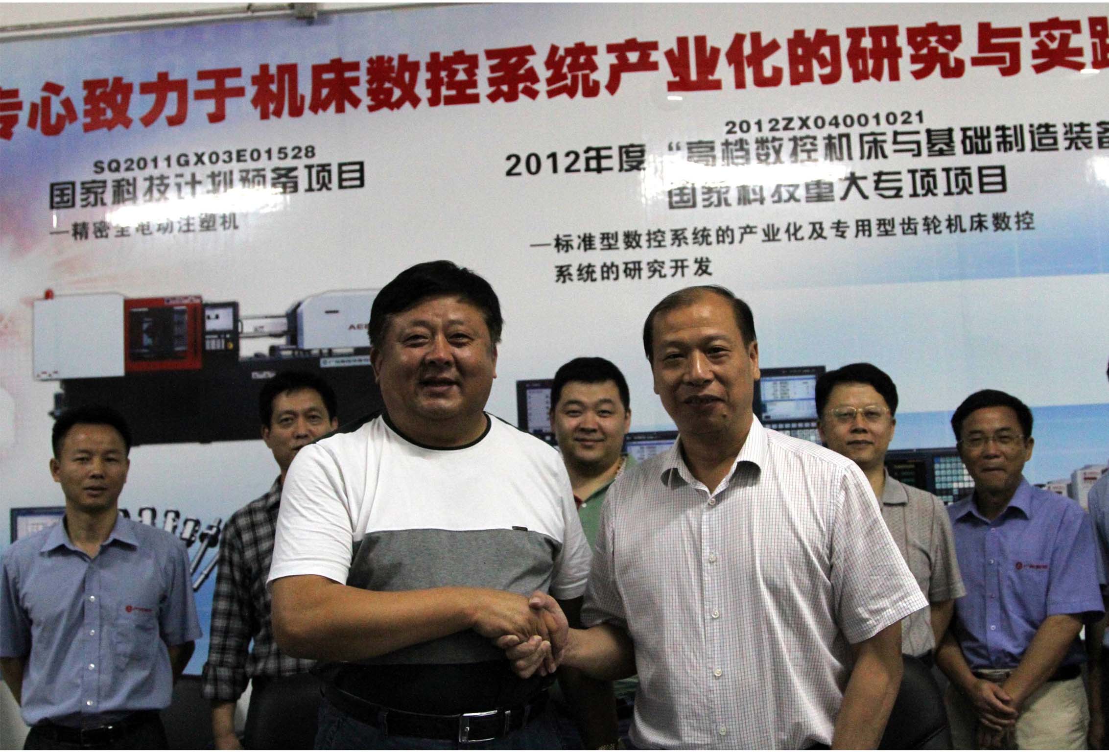 9月28日,集團董事長康鳳明與廣州數(shù)控設(shè)備有限公司董事長何敏佳在廣州簽訂合作框架協(xié)議,集團常務(wù)副總經(jīng)理潘憲平、副總經(jīng)理康峰、廣州數(shù)控設(shè)備有限公司楊堂勇等參加會談和簽字儀式。