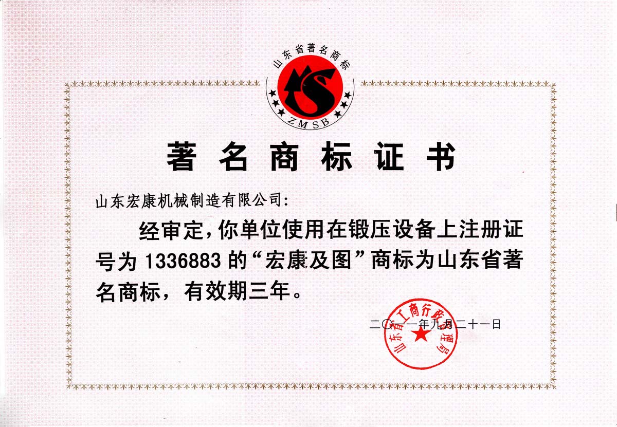 著名商標(biāo)證書